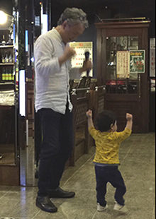 ▼ リュウイチくんの一歳の孫がノリノリ |