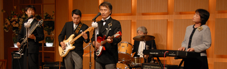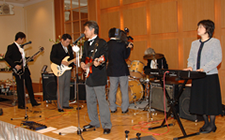 当バンドのリーダー「Sekine」氏の長男の結婚披露宴にKSO2のメンバー全員が招待され祝演奏しました。長男の大ちゃんは幼児の頃からKSO2の舞台に花束を持って上がったり、学生時代には自らバンドを結成していたとのことで蛙の子は蛙ですネ。いつの間にか立派になられて、KSO2のメンバーがすっかり親父になるのも無理のないことです。