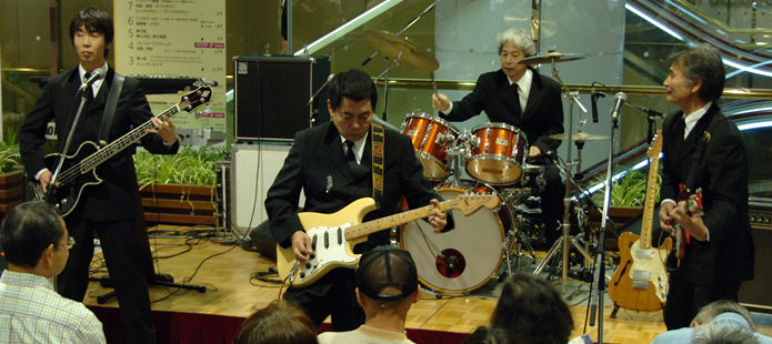 西武・そごう主催の父の日企画である「第3回スーパー親父バンドフェスティバル」にテープ審査を通過した8組が出場しました。今回で2回目の出場です。今回の優勝バンドはKSO2とも交友のある「あすみが丘ベンチャーズ」さんで、バンドリーダーの柳川さんのMCは絶品です。 |