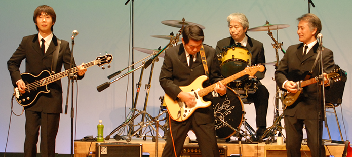 葛飾公民館が主催する19年度事業「葛の葉らいぶ」で"タイムスリップコンサート"と称し、実績のあるバンドを招待し地域の方々に思い出の曲を提供しようとするコンサートです。 2006年「スーパー親父バンドフェスティバル」千葉での優勝の新聞記事を読んだ係りの方からお声がかかり出演することになりましたが、タイムスリップということで1960年代のロックをメインに2部構成で計22曲を演奏しました。「知らない地でのコンサートでお客様が呼べるのだろうか!?」という疑問がありましたが、そこはさすが葛飾公民館さんのこと、大勢のご来場を頂きまたKSO2が演奏するビートルズの曲にあわせて舞台前でノリにのって踊る人続出するほどで愉しんで頂けるのが一目で分かりました。 バンドを続けていて良かったと思う瞬間です。 |