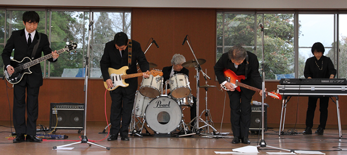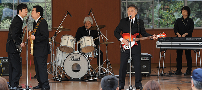 しもふさ学園は、今年で創立25周年を迎え、その歴史とともに「みどり祭り」も地域の方々に支えられ、1000人近くの来場者を迎える法人全体の大きなお祭りとなっております。みどり祭りは福祉施設を理解してもらう為に地域住民との交流行事を行うもので、今年はゲストに「美川憲一」さんを迎えての催しとなりますが、KSO2はその前座を務めさせていただくことになりました。 |