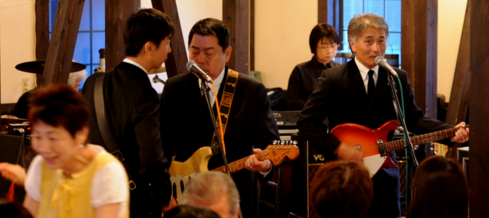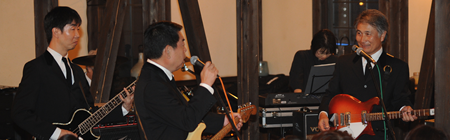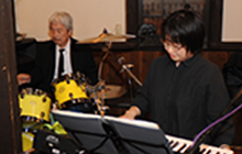 ▼ 柱やアンプの後方のため見えませんが、ドラムスのKonnoも演奏していますのでお見逃し無く |