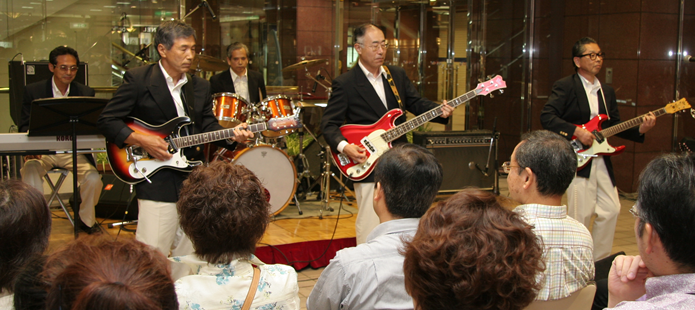 西武・そごう主催の父の日企画である「第3回スーパー親父バンドフェスティバル」にテープ審査を通過した8組が出場しました。今回で2回目の出場です。今回の優勝バンドはKSO2とも交友のある「あすみが丘ベンチャーズ」さんで、バンドリーダーの柳川さんのMCは絶品です。 |