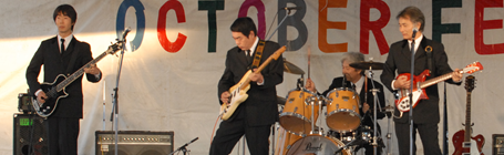 毎年、恒例的に実施されてましたオクトーバー・フェスタが今回を持って終了するとのことで、思い出深いステージにと意気込んで望みましたが当日は雨模様の天気のためお客様の来場が少なくチョッピリ残念でした。逆に雨の中、声援に駆けつけて頂いた方々がいたことに非常に感激した次第です。 |