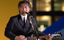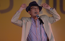 ▼帽子を飛ばし、熱唱していただいた 小泉一成成田市長さん ![]() |