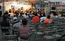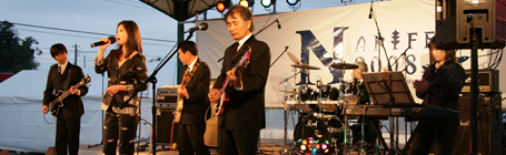 成田空港通り活性化協議会主催の「Narita World Music Fes.2008」通称ナリフェスがイオン成田で開催されました。ナリフェスは恵まれない地域の人々に売り上げの一部を寄付するチャリティーイベントで今回が初めての試みですが、成田市周辺で活動する14組のバンドやプロで活躍する7組の計31組が参加。それぞれ3カ所のステージで行われ、KSO2はイオンモールの野外特設ステージで演奏を行いました。「Iku-chan」「Junna」を含むオールキャストで望み、特別ゲストとして成田市長(小泉一成さん)にも参加して頂き沢田研二さんの曲「勝手にしやがれ」でライブを盛り上げて頂きました。いつもKSO2に応援を頂きましてありがとうございます。 司会は現役DJのTRANS MISSION「アツシ」さんと「トモ」さんです。 |