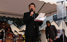 フジテレビのお台場オトナPARK内に設置されたツリーステージにて「第2回集まれ!!オトナバンド」コンテストが開催され、幸運にもビデオ審査により通過した8組の出演バンドに選ばれました。当日の天候は開演時間を待っていたかのように、雨が降り出しKSO2の出番にはドシャ降り。それでもボーカルの「OGAWA」は極寒のさなかビショ濡れになりながらも熱唱し、MCの桑野信義氏に絶賛されるも優勝には及びませんでした。このステージではレギュラーメンバーのベース「KATOH」が出演できなかったため、助っ人として同じ職場の「GUNJI」に急遽お願いしたところです。 |