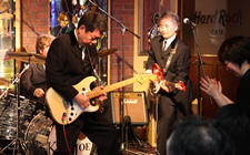 このイベントは成田ふるさとまつりのイベント委員会メンバーが、「もっと成田に音楽を楽しむ環境を根付かせよう!」を合い言葉にボランティア組織を結成し、音の根成田チャリティーライブを開催したものでKSO2もその趣旨に賛同し、出演させていただきました。平日の遅い時間帯にもかかわらず、ハードロックカフェが満席となるほどの来場者がありLIVEを盛り上げていただきましたみなさまに心から感謝する次第です。このイベントをもちましてベースマン「KATOH」はチョット事情がありましてしばらくの間お休みをいただくことになりました。いずれ復帰しますので、その節はよろしくお願いいたします。 |