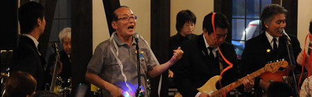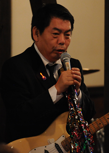 ▼ 飛び入りでGSを歌っていただきました小泉成田市長 |