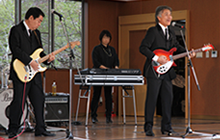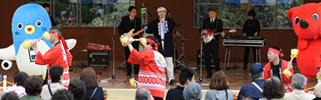 しもふさ学園は、今年で創立25周年を迎え、その歴史とともに「みどり祭り」も地域の方々に支えられ、1000人近くの来場者を迎える法人全体の大きなお祭りとなっております。みどり祭りは福祉施設を理解してもらう為に地域住民との交流行事を行うもので、今年はゲストに「美川憲一」さんを迎えての催しとなりますが、KSO2はその前座を務めさせていただくことになりました。 |
