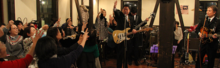 当初はクリスマスライブを企画し会場となる「今宵、成田で世界の肉料理とごほうびワインを」とで日程打合せしましたが、クリスマス前は他の団体等が予約がいっぱいのため会場の貸し切り予約の可能な年末(27日)に実施することに…。ライブタイトルを「年末ライブ2016」と命名した次第です。いつも助っ人して頂いているキーボード奏者の井上さんが体調不良のため代打を探しましたが、年末ということもありなかなか見つからず、時折ベースの助っ人で頼んでいる郡司さんの紹介により「堀井」さんに依頼することができました。 |